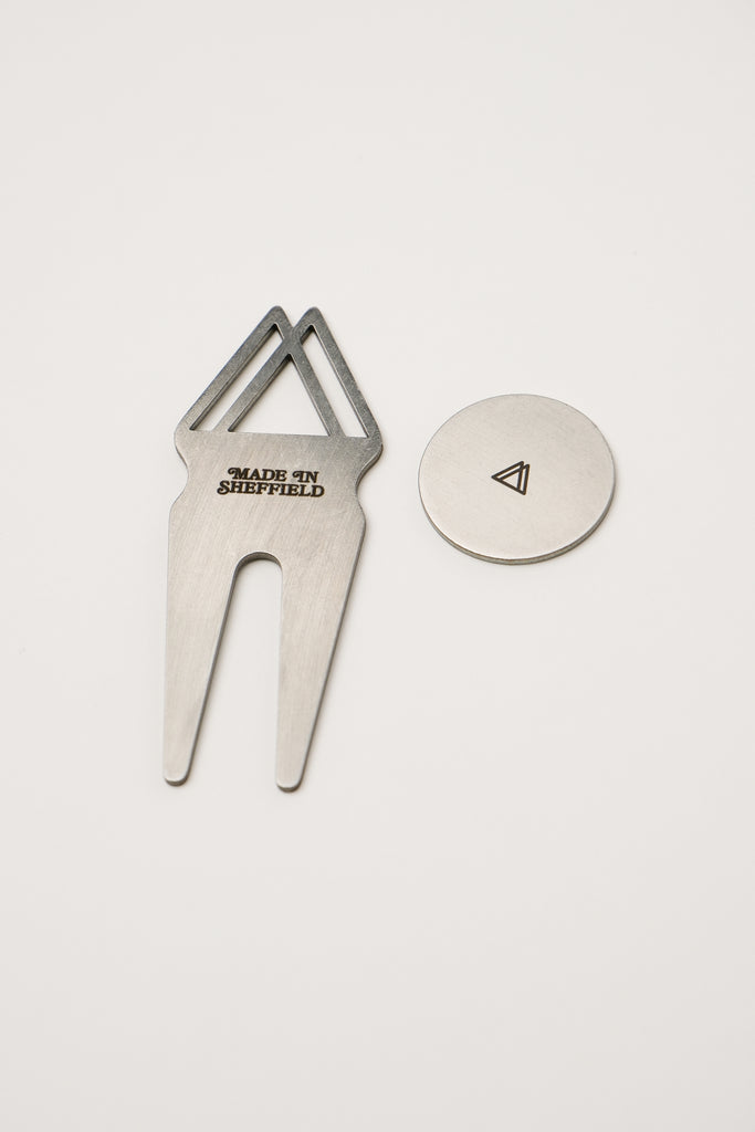 Expertly crafted in Sheffield, this Divot Tool & Ball Marker is a must-have for any golfer. The divot tool helps repair green damage, while the green marker ensures accurate ball placement.