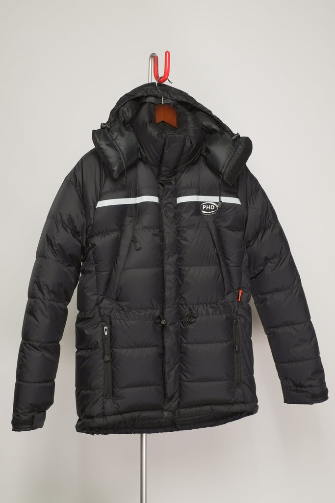 Full expedition length with cinchable hem, adjustable cuff tabs and high down filled collar all work to keep out the cold. The elasticated waist drawcords help to achieve maximum warmth and fit. The full adjustable, box-wall, down filled hood keeps out the worst of the weather.