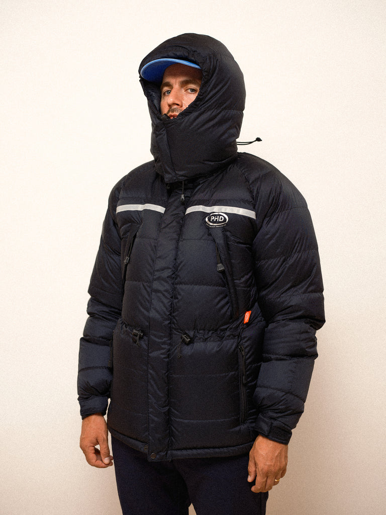 Full expedition length with cinchable hem, adjustable cuff tabs and high down filled collar all work to keep out the cold. The elasticated waist drawcords help to achieve maximum warmth and fit. The full adjustable, box-wall, down filled hood keeps out the worst of the weather.