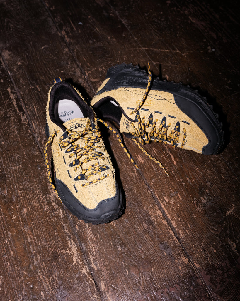 Featuring a lightweight, breathable upper, high-traction outsole, and KEEN’s signature cushioned insole, it's a versatile shoe made for walking, travelling, and general outdoor leisure. Finished with climbing-inspired laces and subtle detailing, it pairs effortlessly with Mamnick’s relaxed, functional wardrobe.