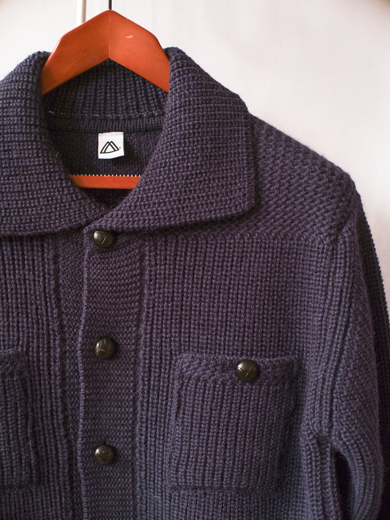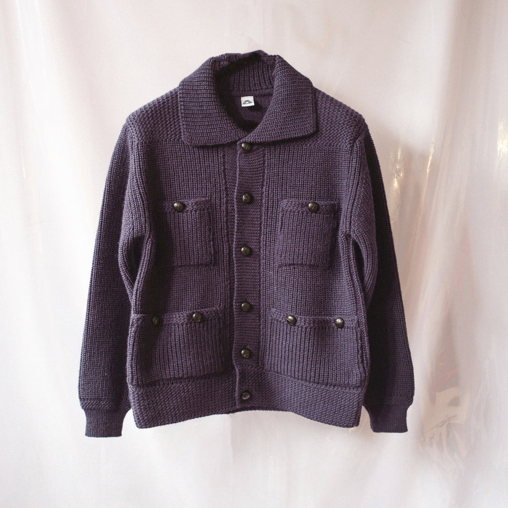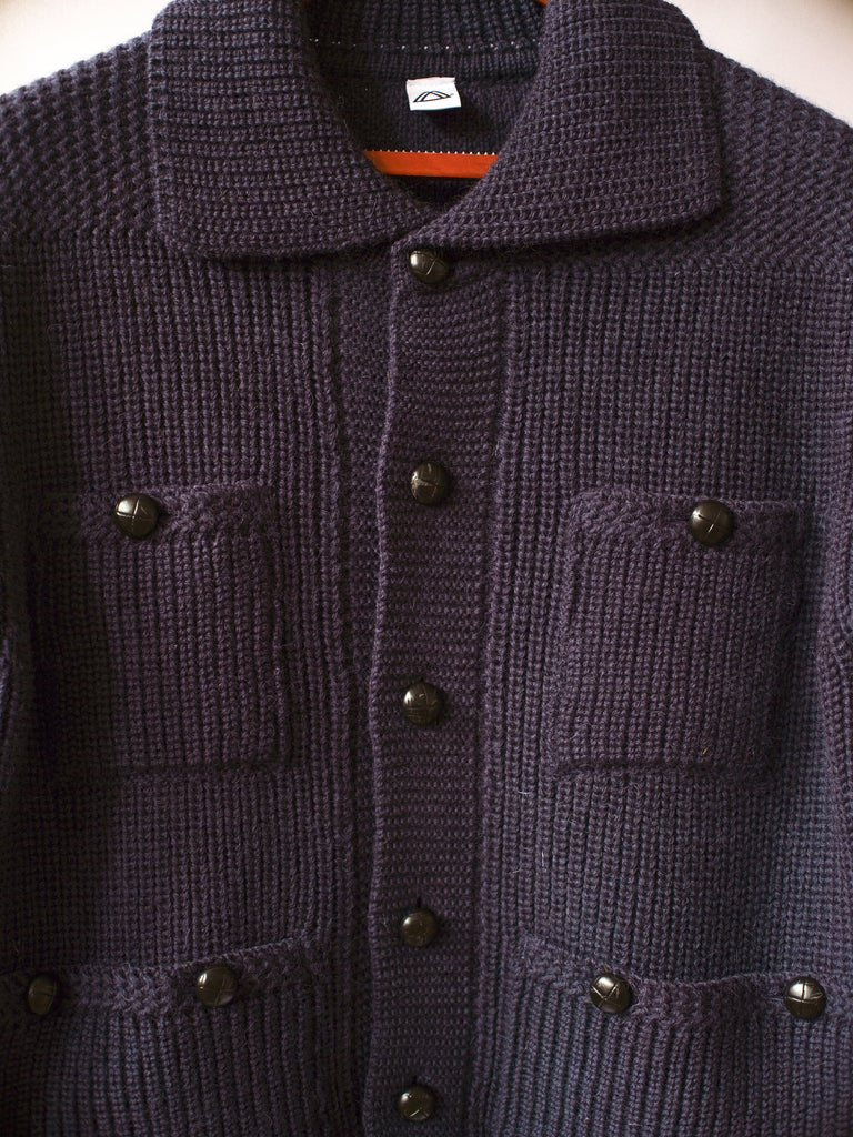 The Mamnick Hassop cardigan is very warm knit, featuring two patch pockets and two-chest pockets and featuring original 1980s 'football' leather buttons.