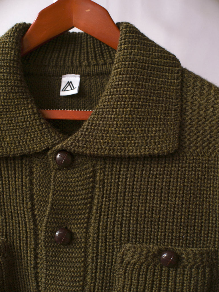 The Mamnick Hassop cardigan is very warm knit, featuring two patch pockets and two-chest pockets and featuring original 1980s 'football' leather buttons.