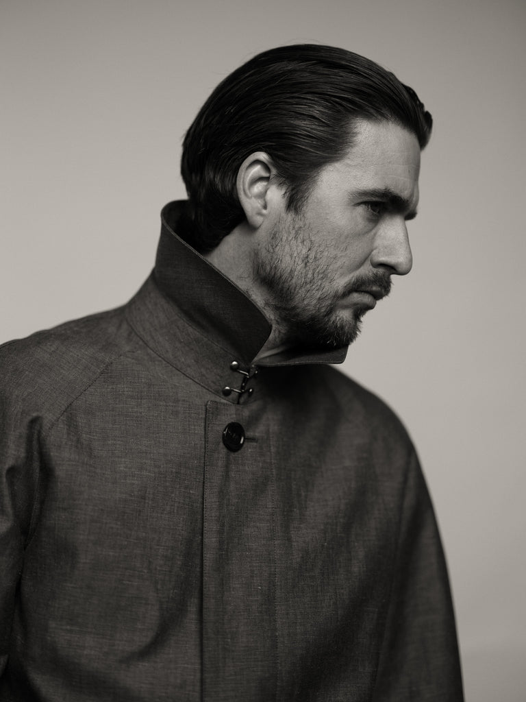 Cut from a Vitale Barberis Canonico wool/cotton/linen mix - water-repellent and wind-resistant. it’s designed for weather that doesn’t quite settle. Structured enough to hold its shape, but easy enough to wear every day.